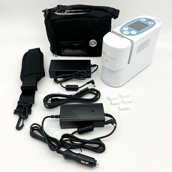 • IN THE PACKAGEP2-E6 Portable Concentrator, Battery, AC Power Supply & Cord, DC Power Supply, Carrying Case, 12 Free Nasal Cannulas & Printed User Manual